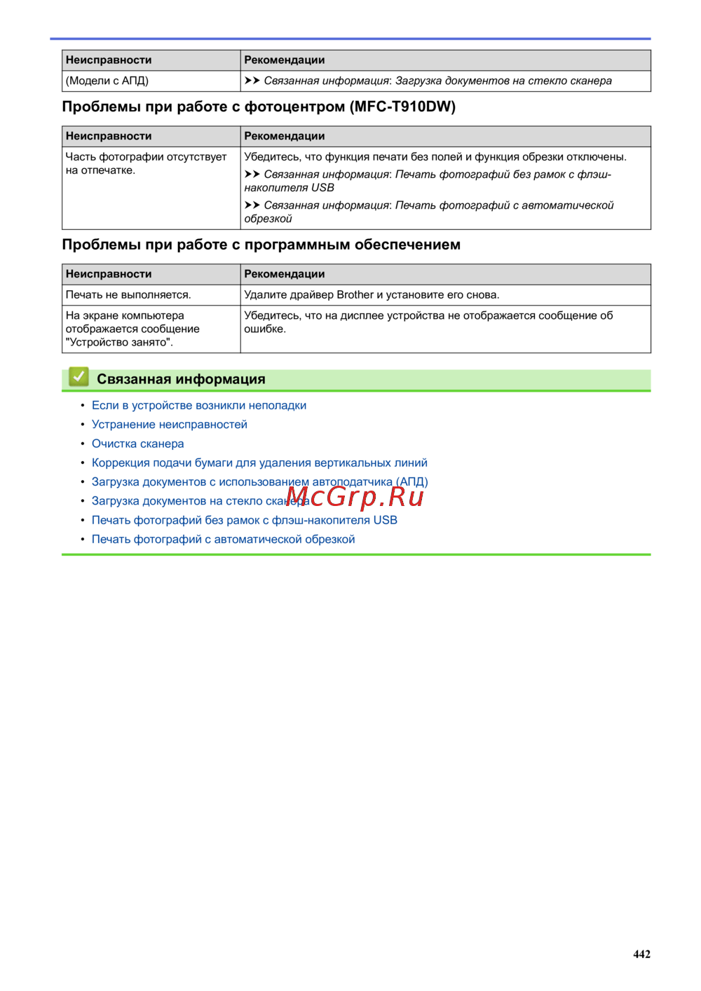 - Связанные модели mfc t910dw p.533