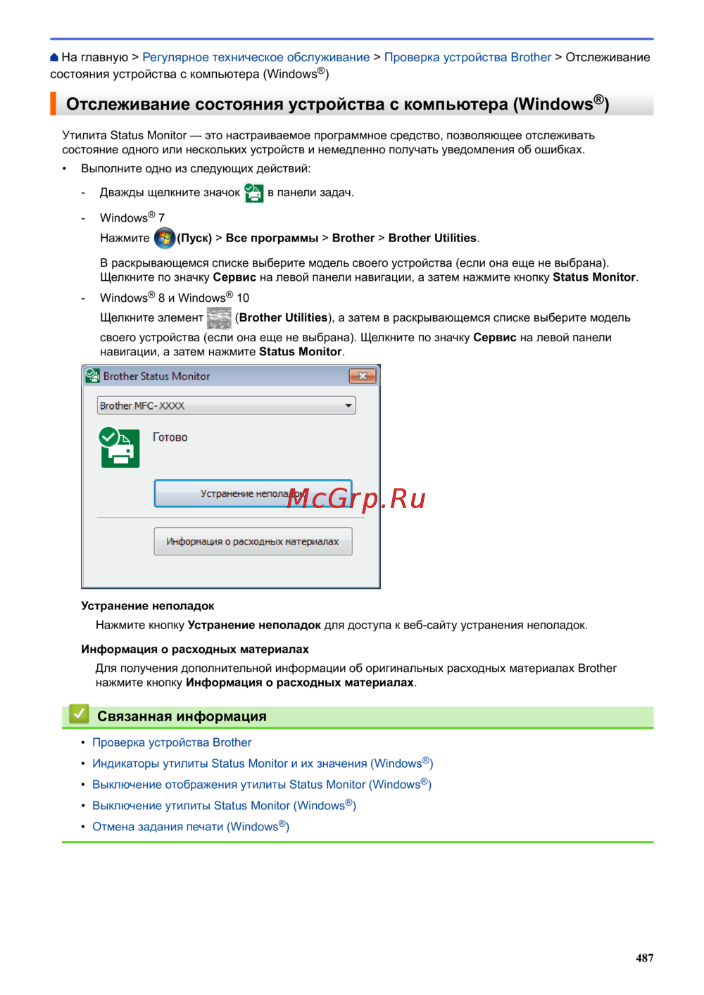 - Для загрузки последних обновлений драйверов перейдите на страницу файлы используемой модели на веб сайте brother solutions center по адресу support brother com и загрузите полный пакет драйверов и программного обеспечения p.558