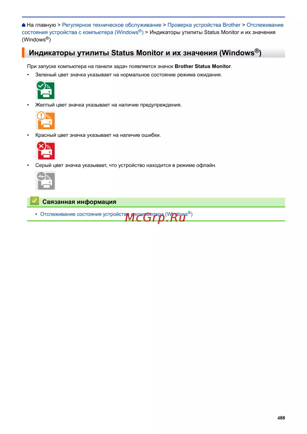 При запуске компьютера на панели задач появляется значок Brother Status Monitor.