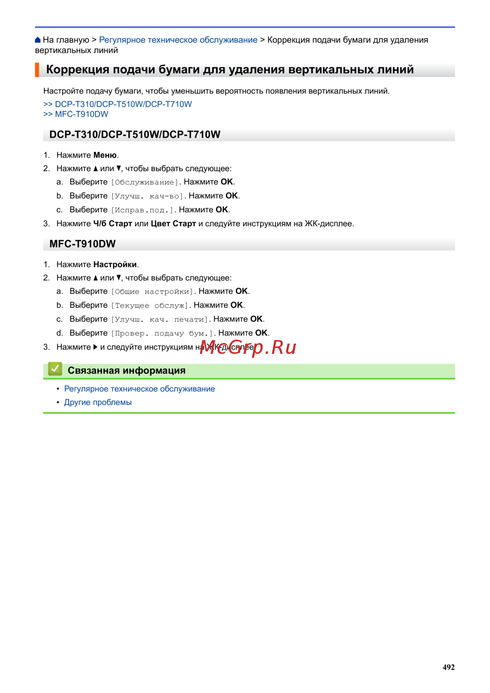 - Связанные модели mfc t910dw p.533