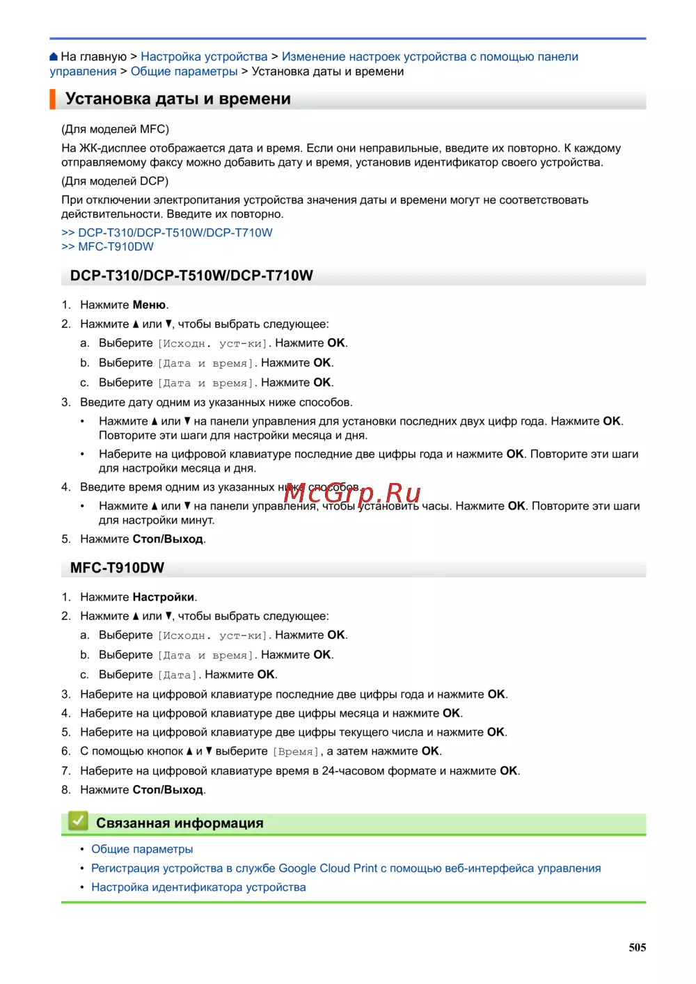 Brother DCP-T310 InkBenefit Plus — как установить дату и время на устройстве: пошаговая инструкция [511/562]