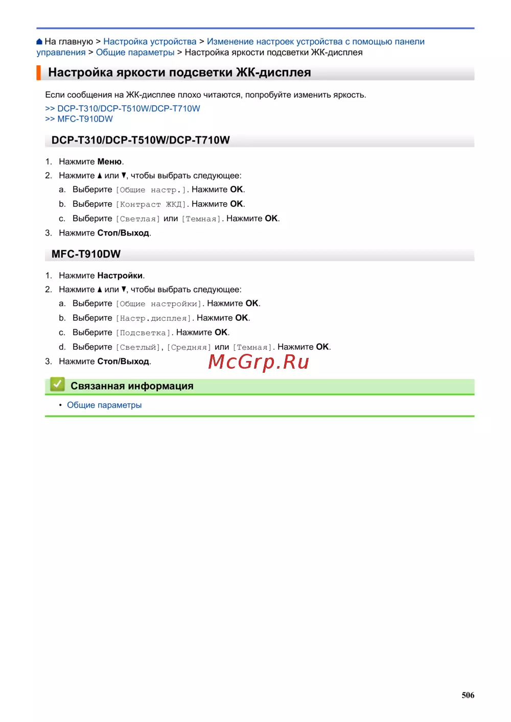 Brother DCP-T310 InkBenefit Plus [512/562] Связанная информация