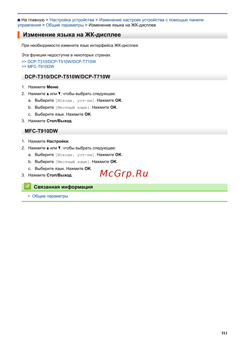 Brother DCP-T310 InkBenefit Plus [517/562] Связанная информация