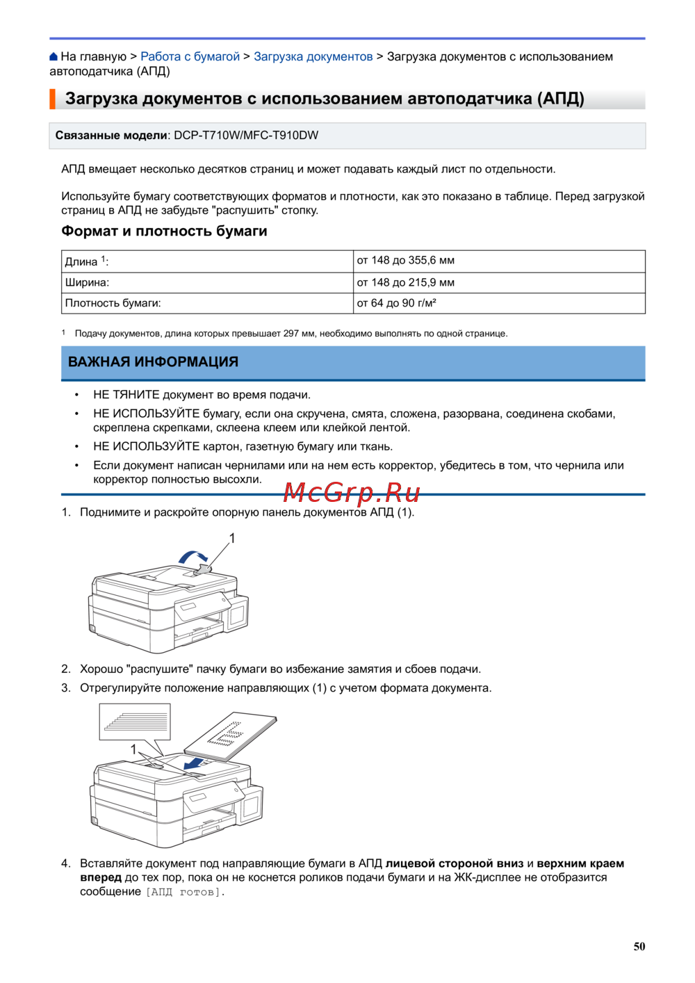- Эта функция доступна для моделей mfc p.554
