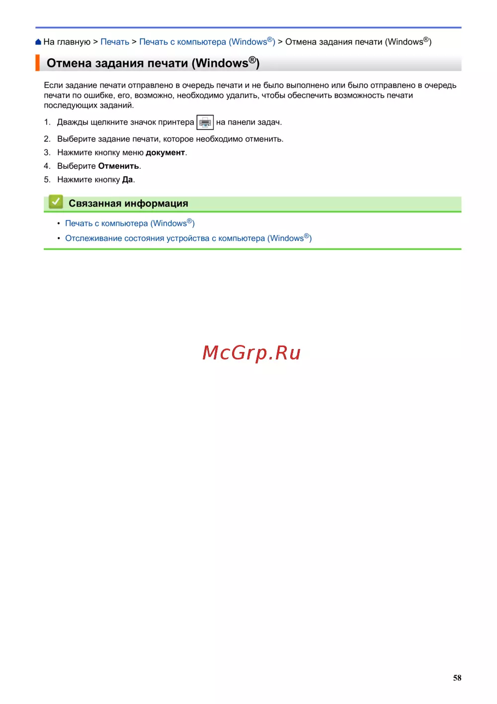 - Для загрузки последних обновлений драйверов перейдите на страницу файлы используемой модели на веб сайте brother solutions center по адресу support brother com и загрузите полный пакет драйверов и программного обеспечения p.558