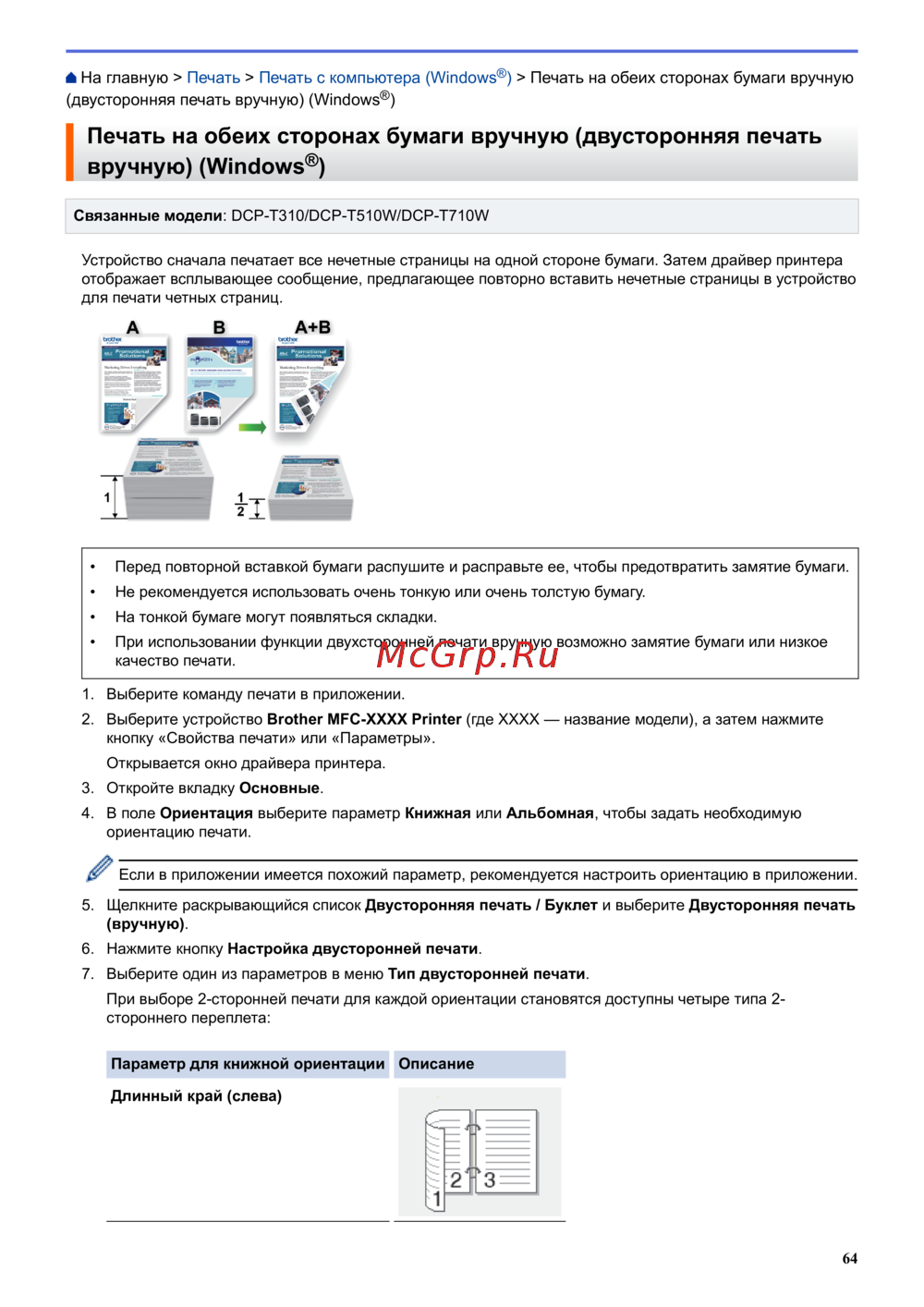 Печать на обеих сторонах бумаги вручную (двусторонняя печать