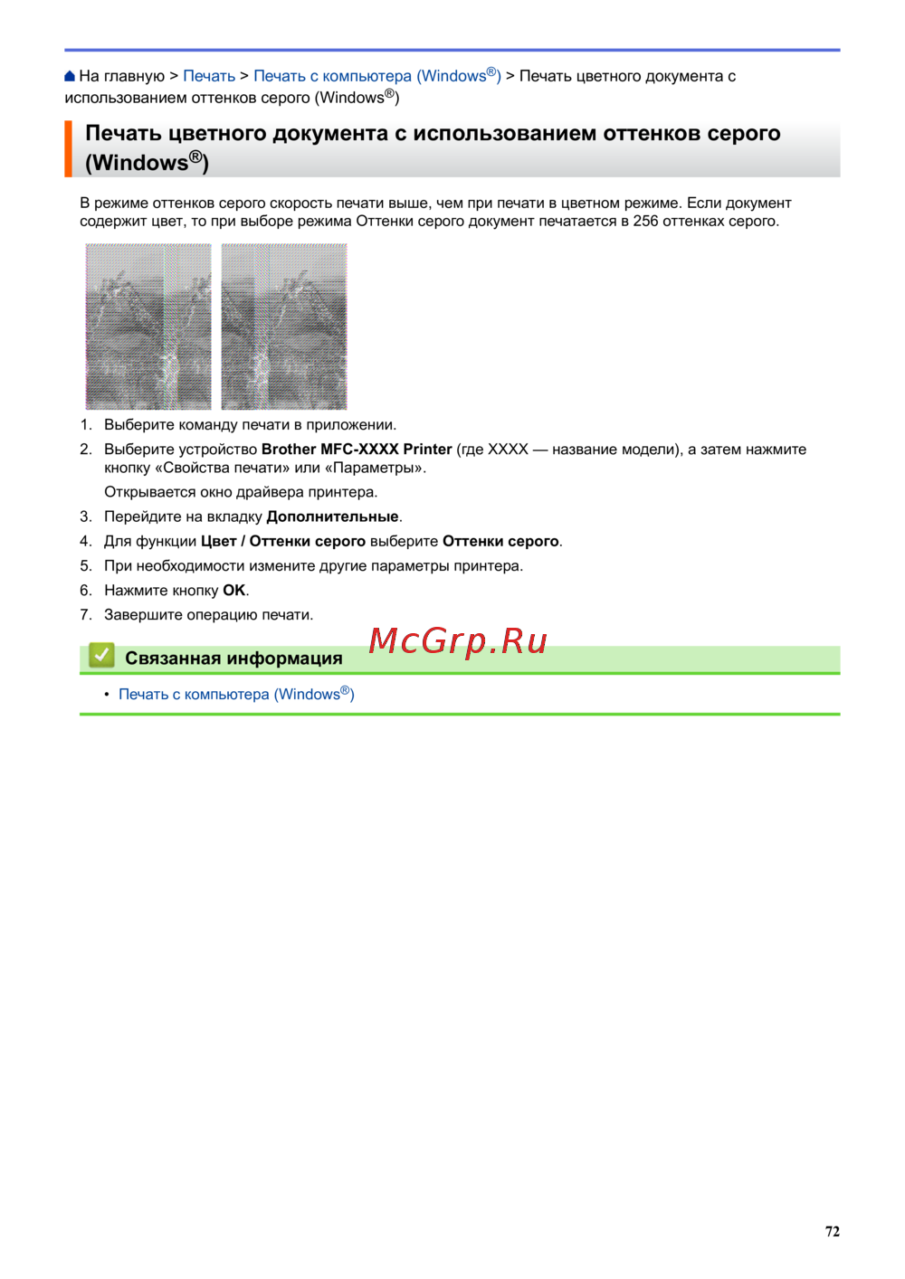 В режиме оттенков серого скорость печати выше, чем при печати в цветном режиме. Если документ