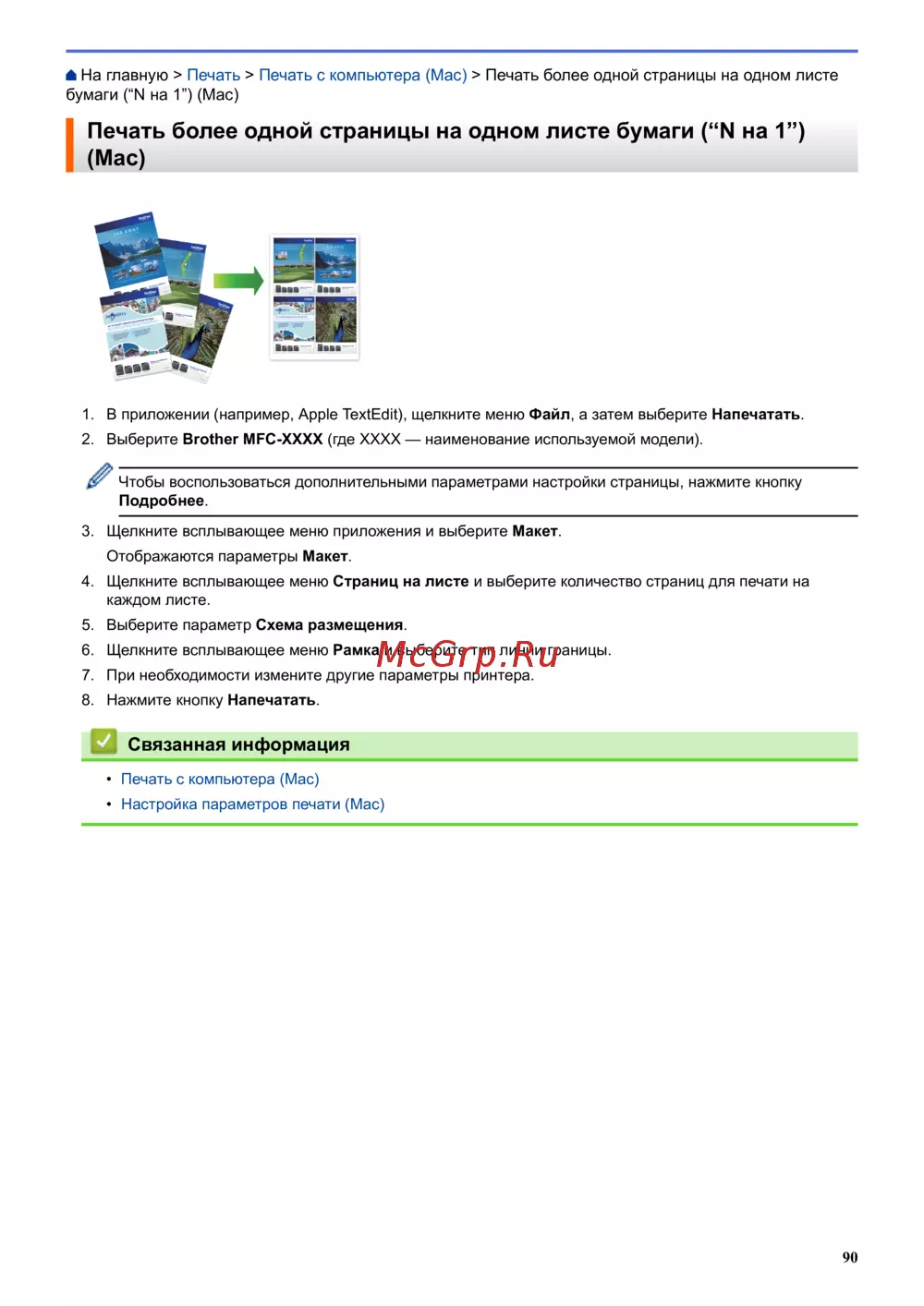 На главную > Печать > Печать с компьютера (Mac) > Печать более одной страницы на одном листе