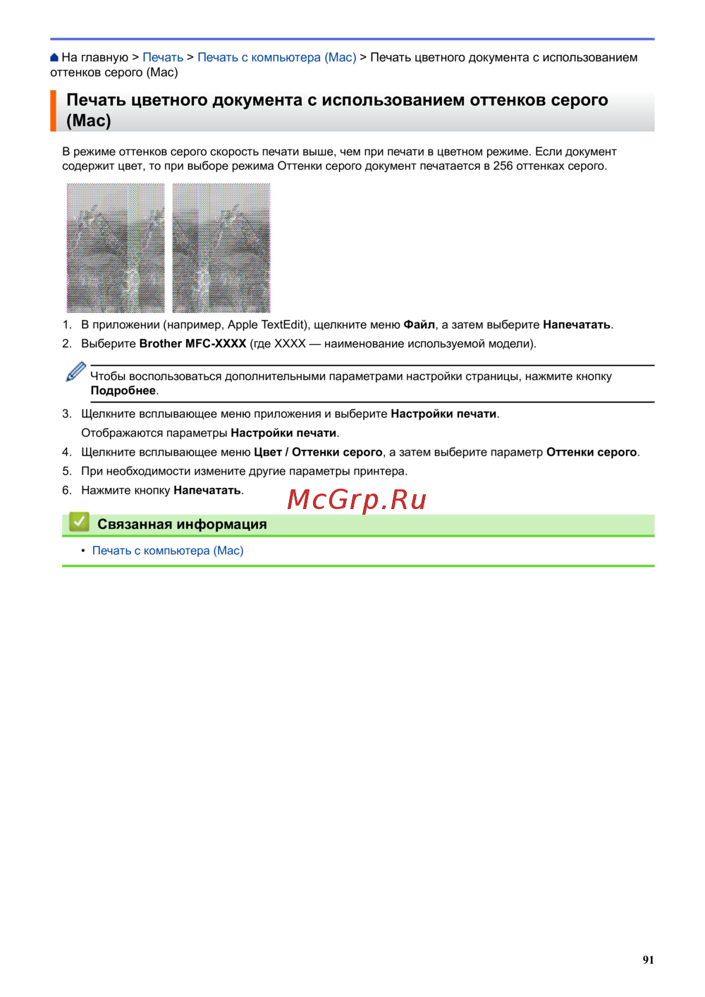 На главную > Печать > Печать с компьютера (Mac) > Печать цветного документа с использованием