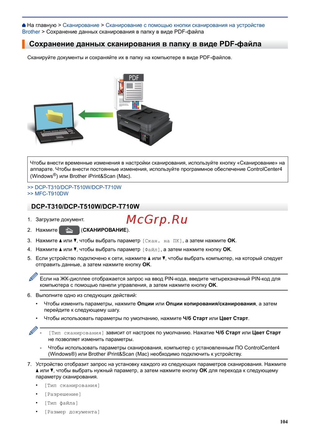 Brother DCP-T510W InkBenefit Plus — сканирование документов и сохранение в PDF на компьютере [110/562]