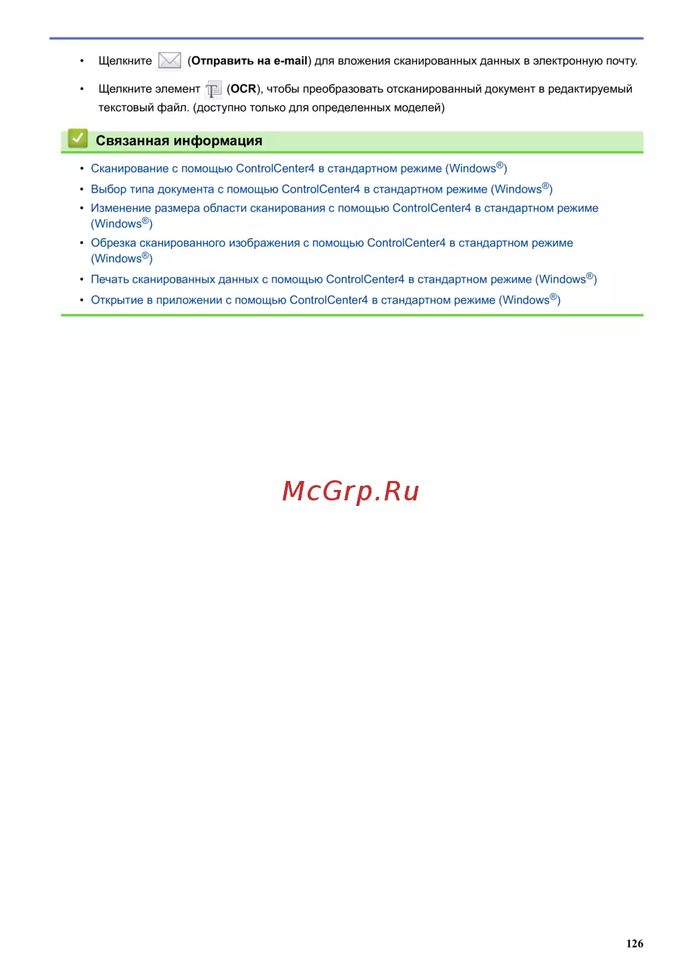 Изучите функции ControlCenter4 для управления сканированием, OCR, отправкой на email, редактированием и печатью документов в Windows. Полный гайд по основным возможностям.