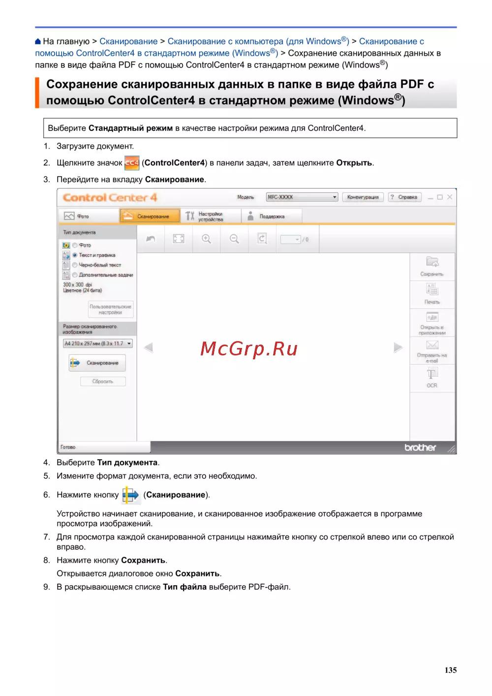 - Настройка устройства brother с помощью controlcenter4 window p.538