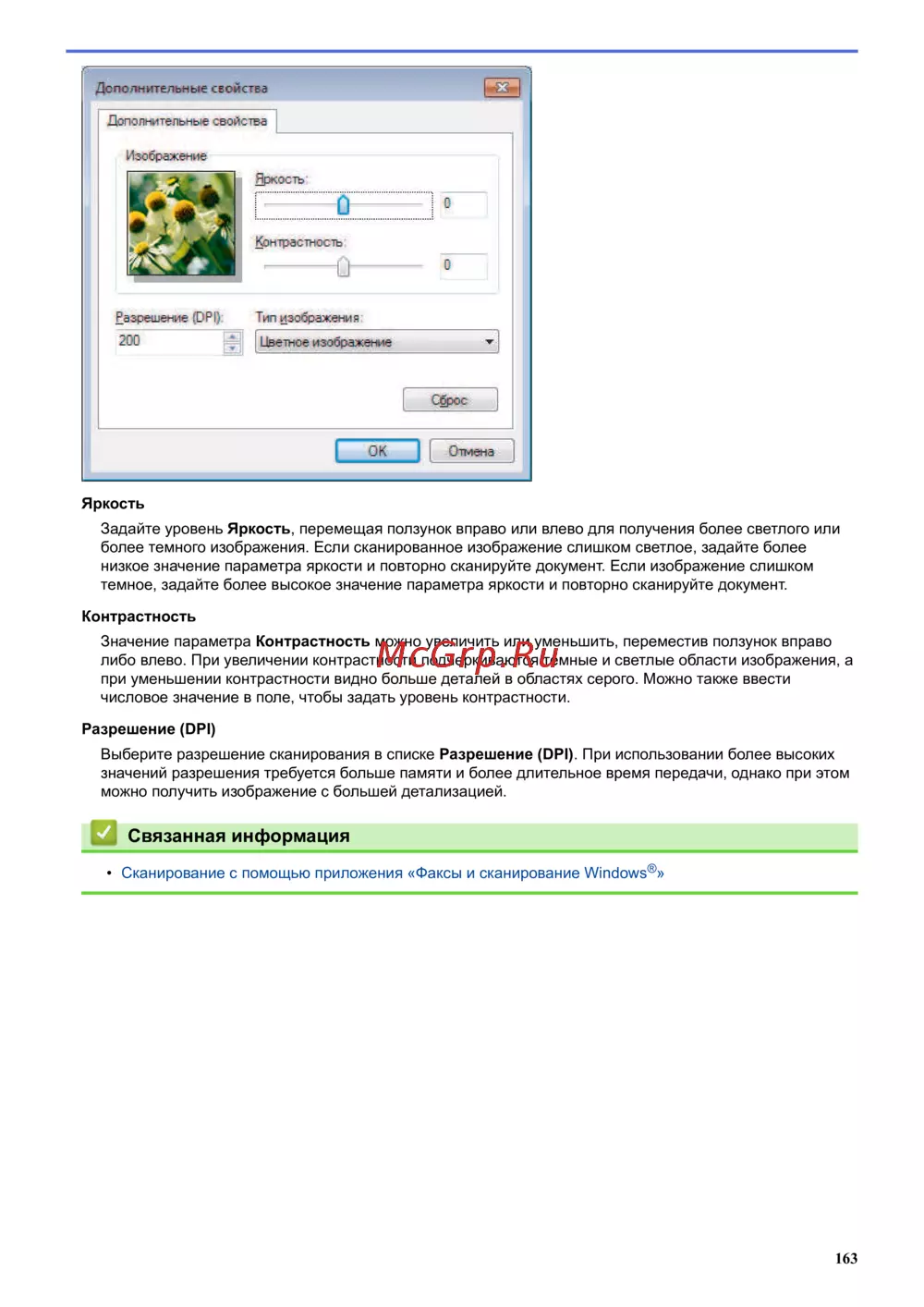 низкое значение параметра яркости и повторно сканируйте документ. Если изображение слишком