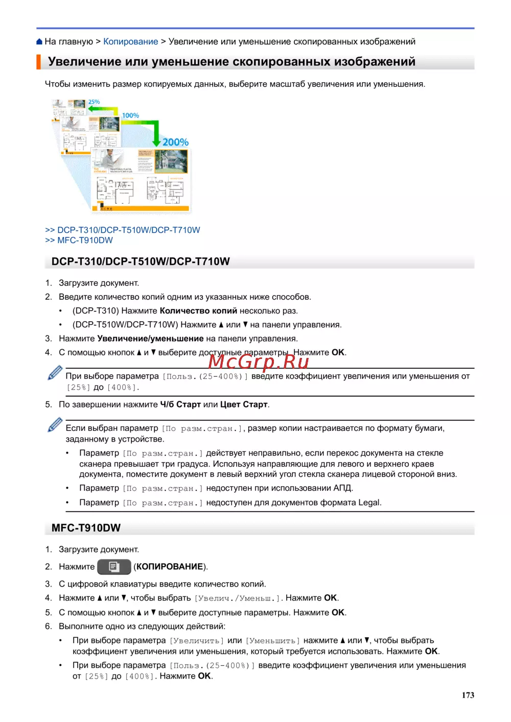 Brother DCP-T510W InkBenefit Plus [179/562] Увеличение или уменьшение скопированных изображений