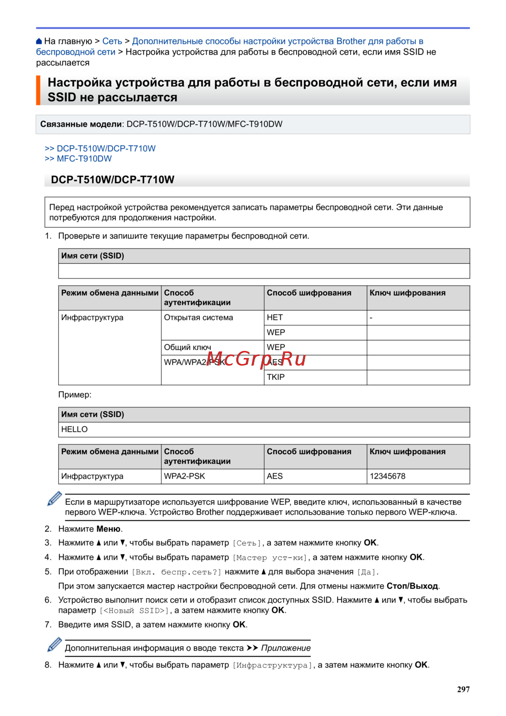 Brother DCP-T510W InkBenefit Plus — настройка устройства для работы в беспроводной сети без SSID [303/562]