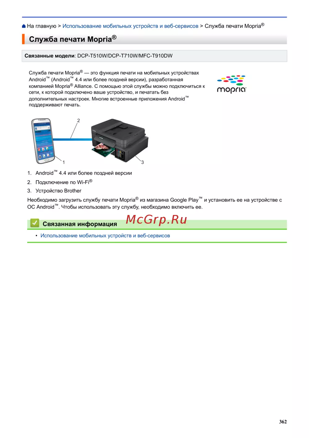 На главную > Использование мобильных устройств и веб-сервисов > Служба печати Mopria