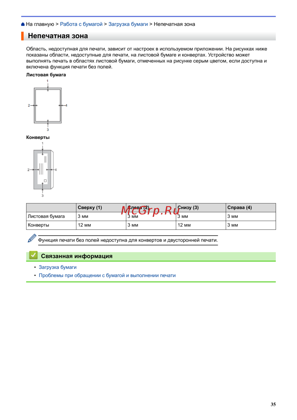 На главную > Работа с бумагой > Загрузка бумаги > Непечатная зона