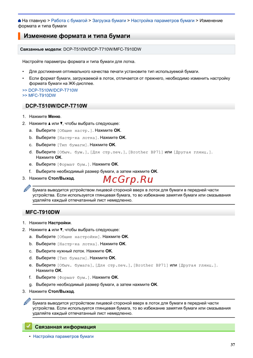 Связанные модели: DCP-T510W/DCP-T710W/MFC-T910DW
