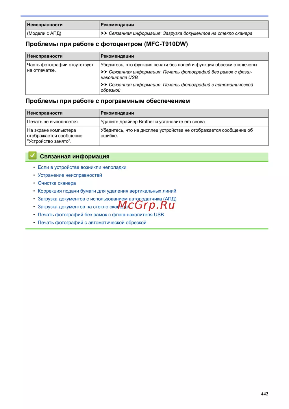 - Для загрузки последних обновлений драйверов перейдите на страницу файлы используемой модели на веб сайте brother solutions center по адресу support brother com и загрузите полный пакет драйверов и программного обеспечения p.558