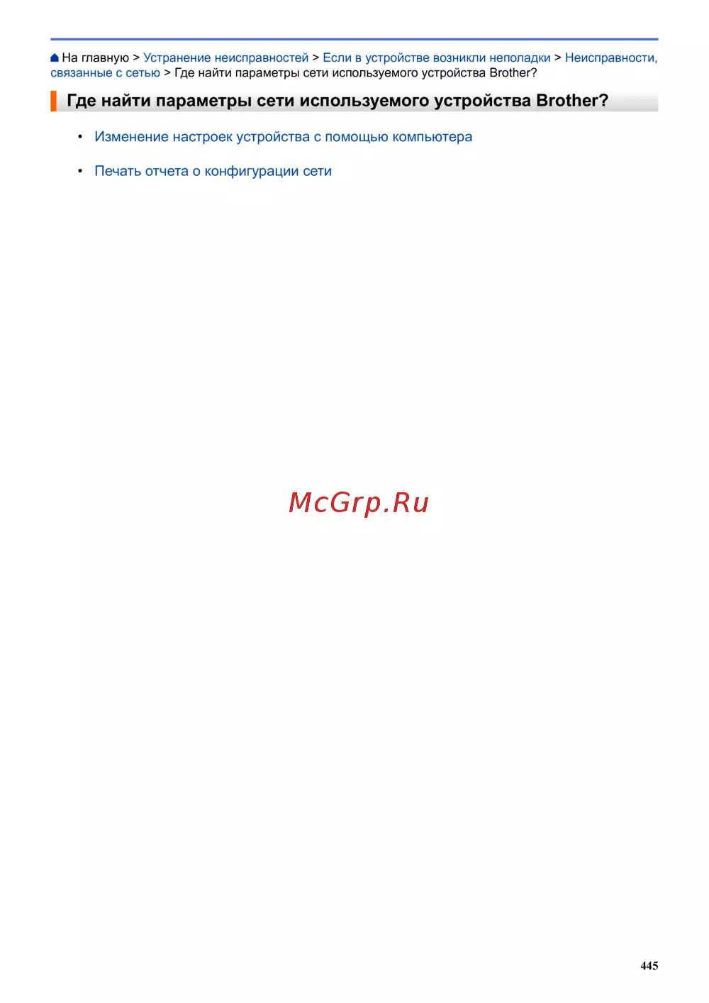 - Если требуется более расширенное управление устройством воспользуйтесь последней версией утилиты brother bradmin professional перейдите на страницу файлы для вашего устройства на веб сайте brother solutions center по адресу support brother com и загрузите программное обеспечение p.557