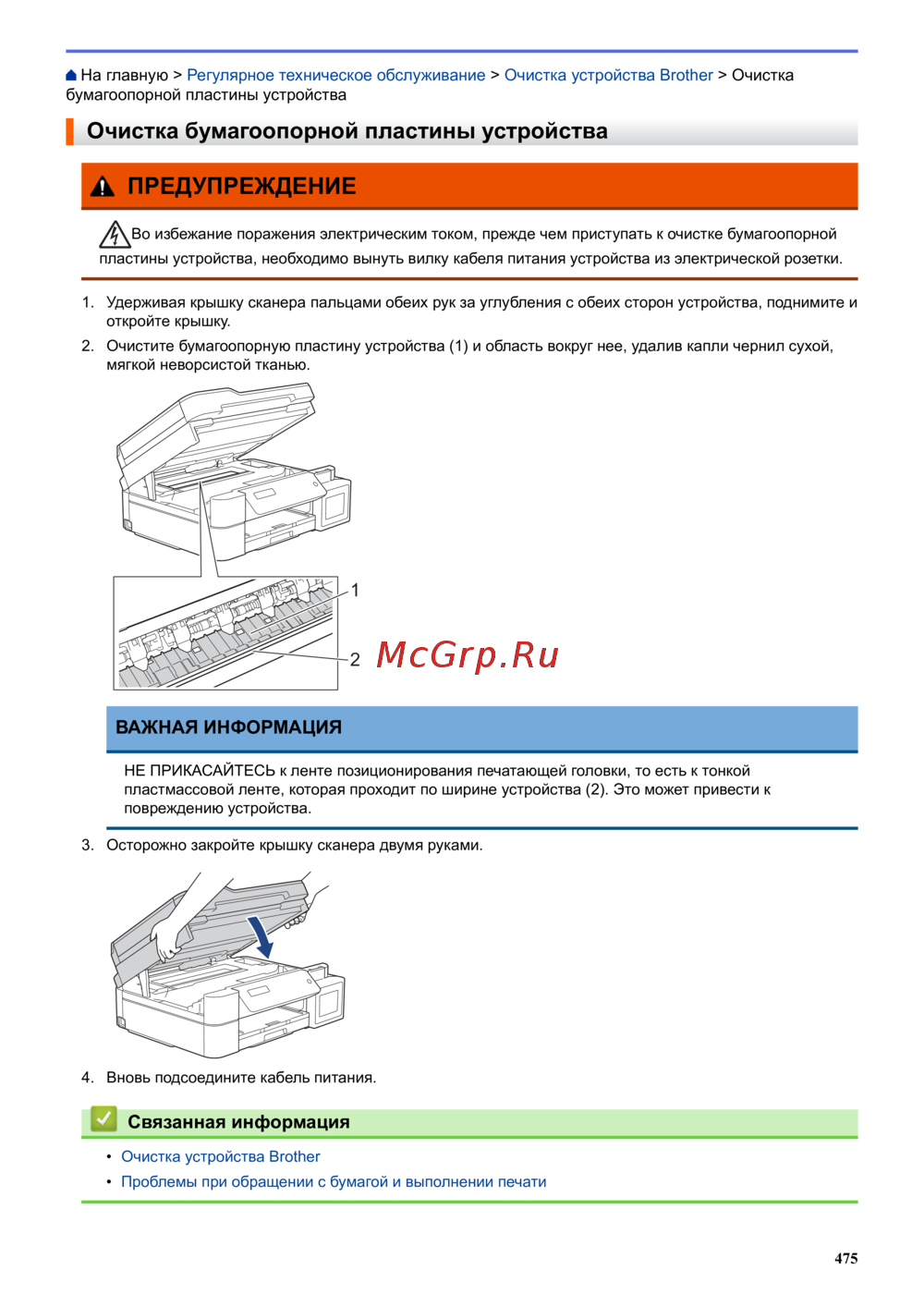 Узнайте, как безопасно и эффективно очистить бумагоопорную пластину устройства. Следуйте простым шагам для предотвращения повреждений и поддержания качества печати.