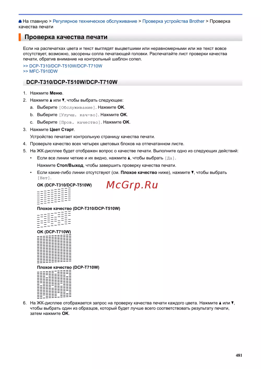 Brother DCP-T510W InkBenefit Plus — проверка качества печати: советы по техническому обслуживанию [487/562]
