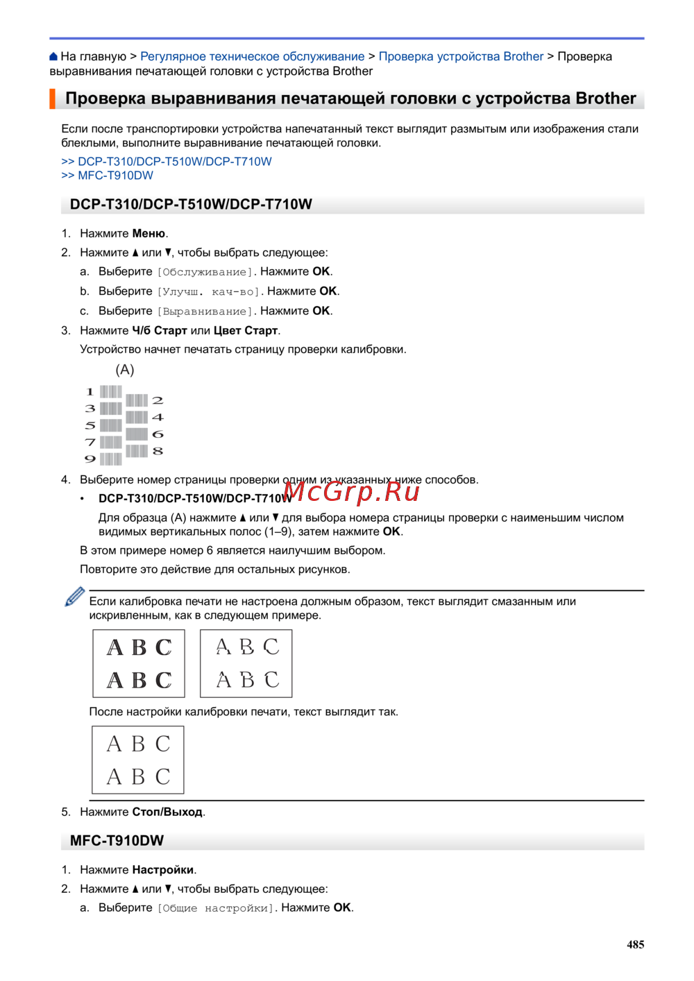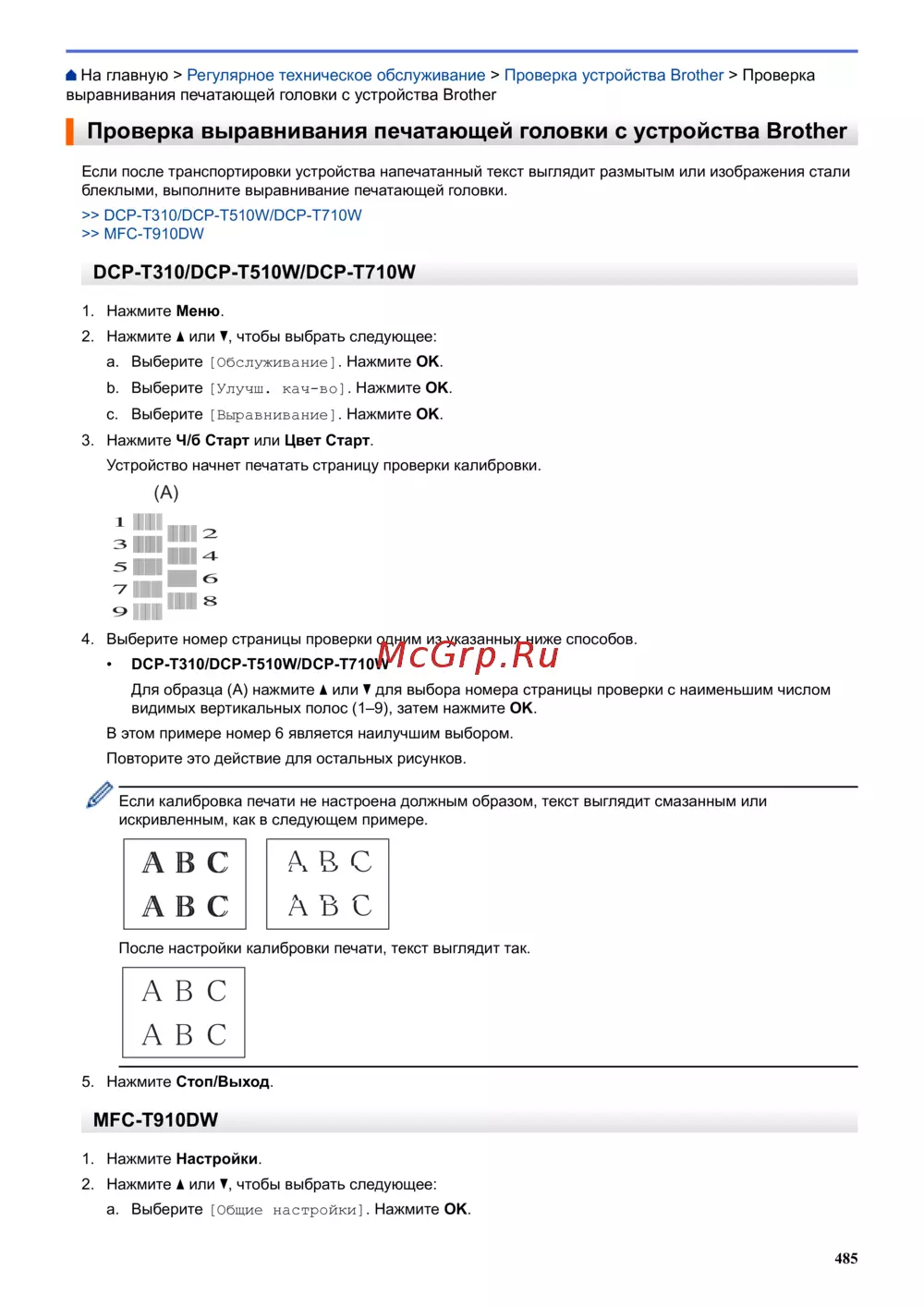 ![Brother DCP-T510W InkBenefit Plus [491/562] Проверка выравнивания печатающей головки с устройства brother](/views2/1419258/page491/bg1eb.png)