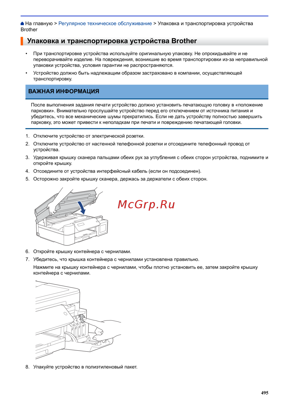 На главную > Регулярное техническое обслуживание > Упаковка и транспортировка устройства