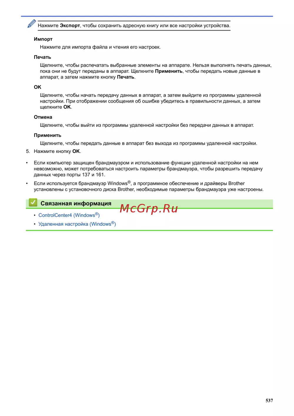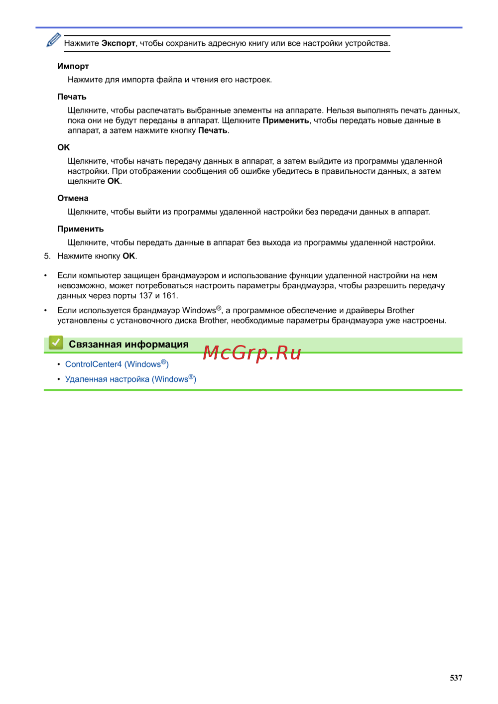 - Настройка устройства brother с помощью controlcenter4 window p.538