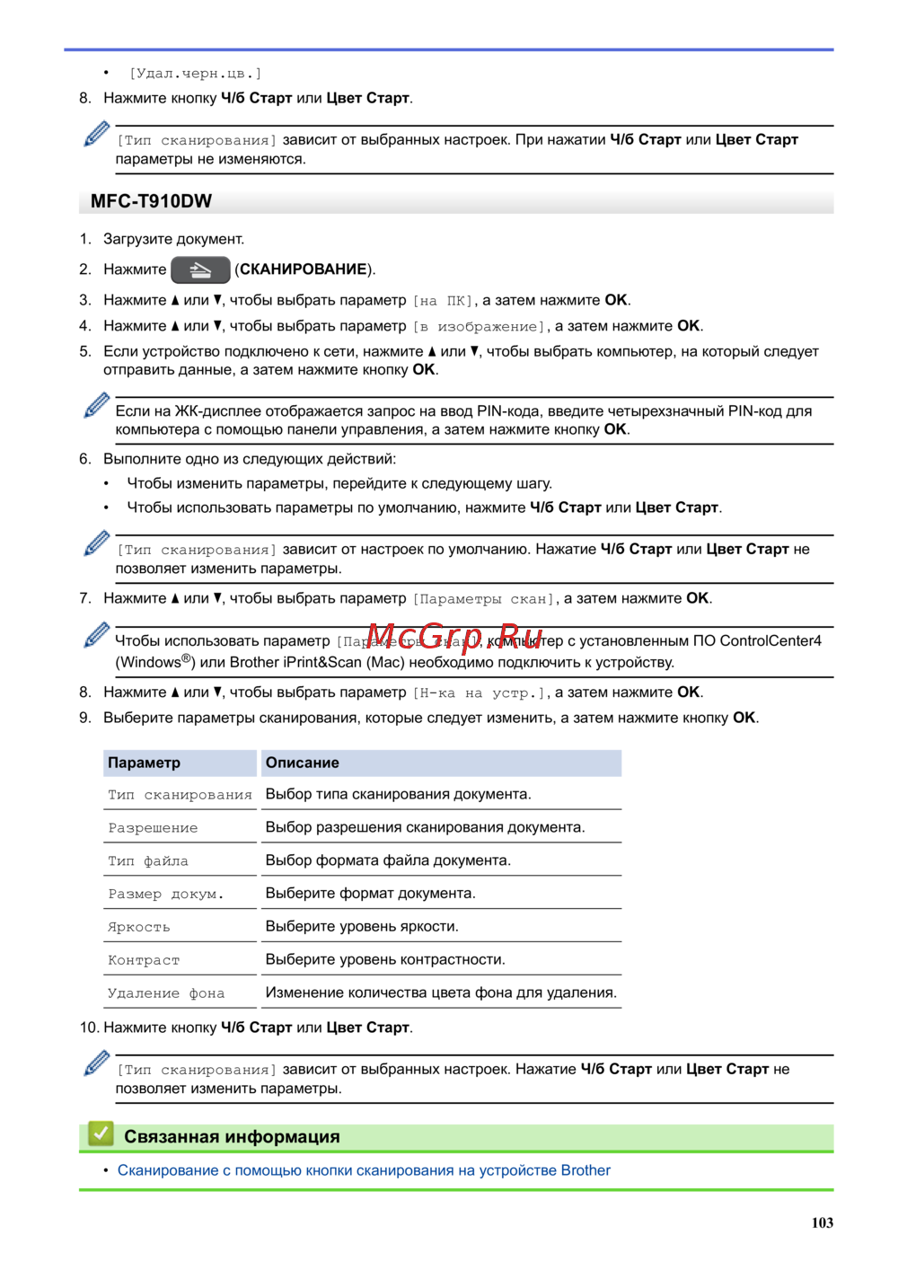 • Сканирование с помощью кнопки сканирования на устройстве Brother