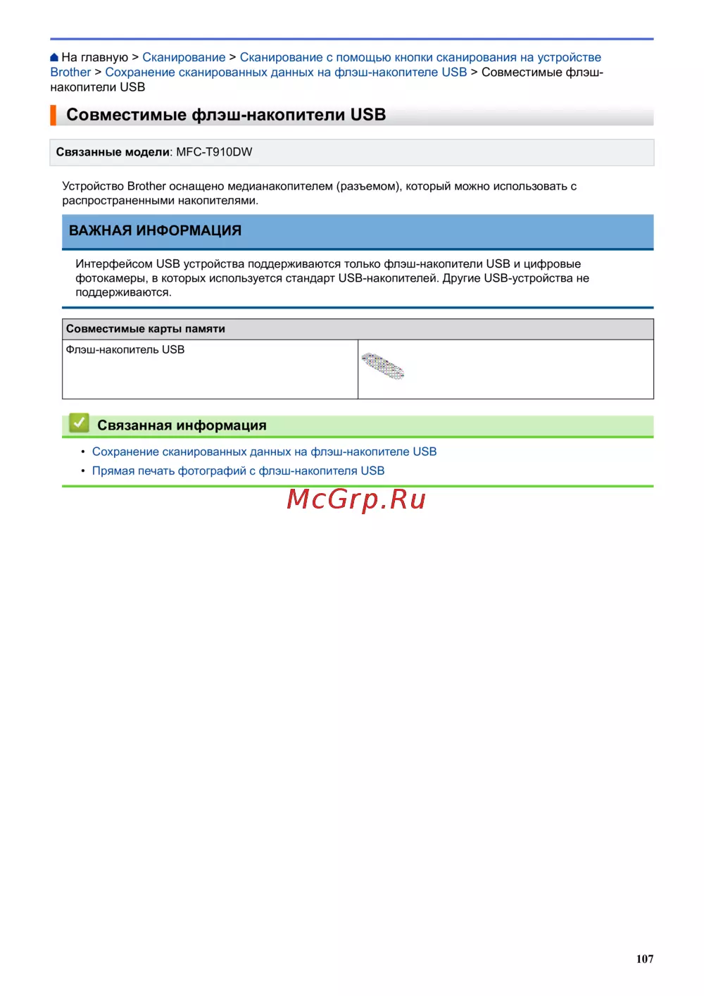 Brother > Сохранение сканированных данных на флэш-накопителе USB > Совместимые флэш-