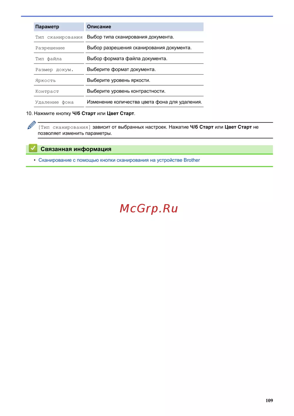 • Сканирование с помощью кнопки сканирования на устройстве Brother