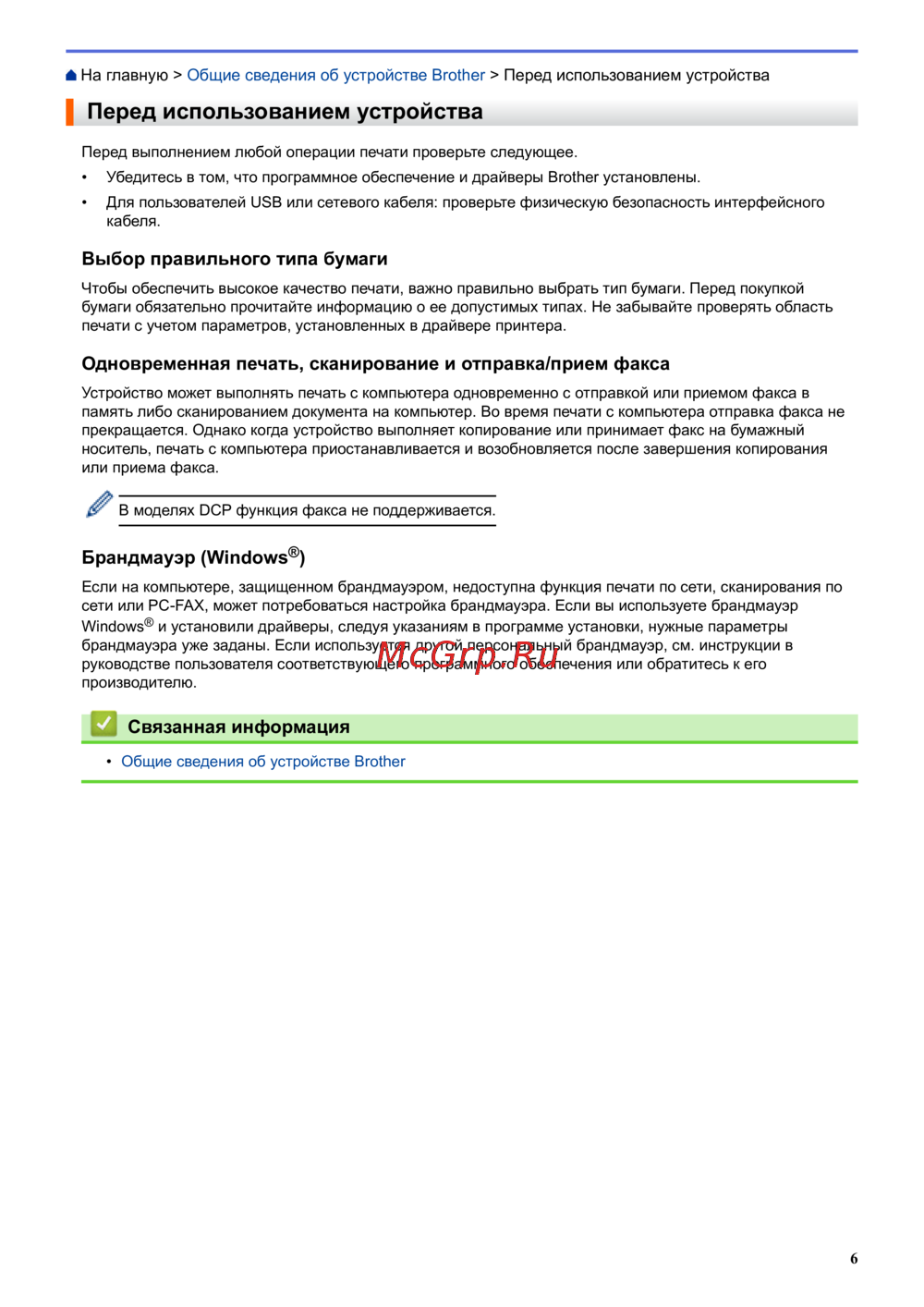 На главную > Общие сведения об устройстве Brother > Перед использованием устройства