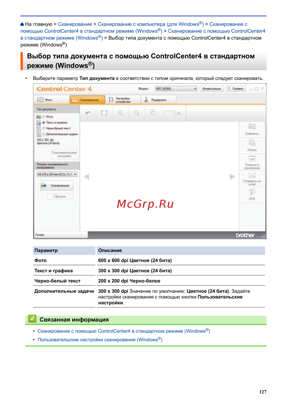 - Настройка устройства brother с помощью controlcenter4 window p.538
