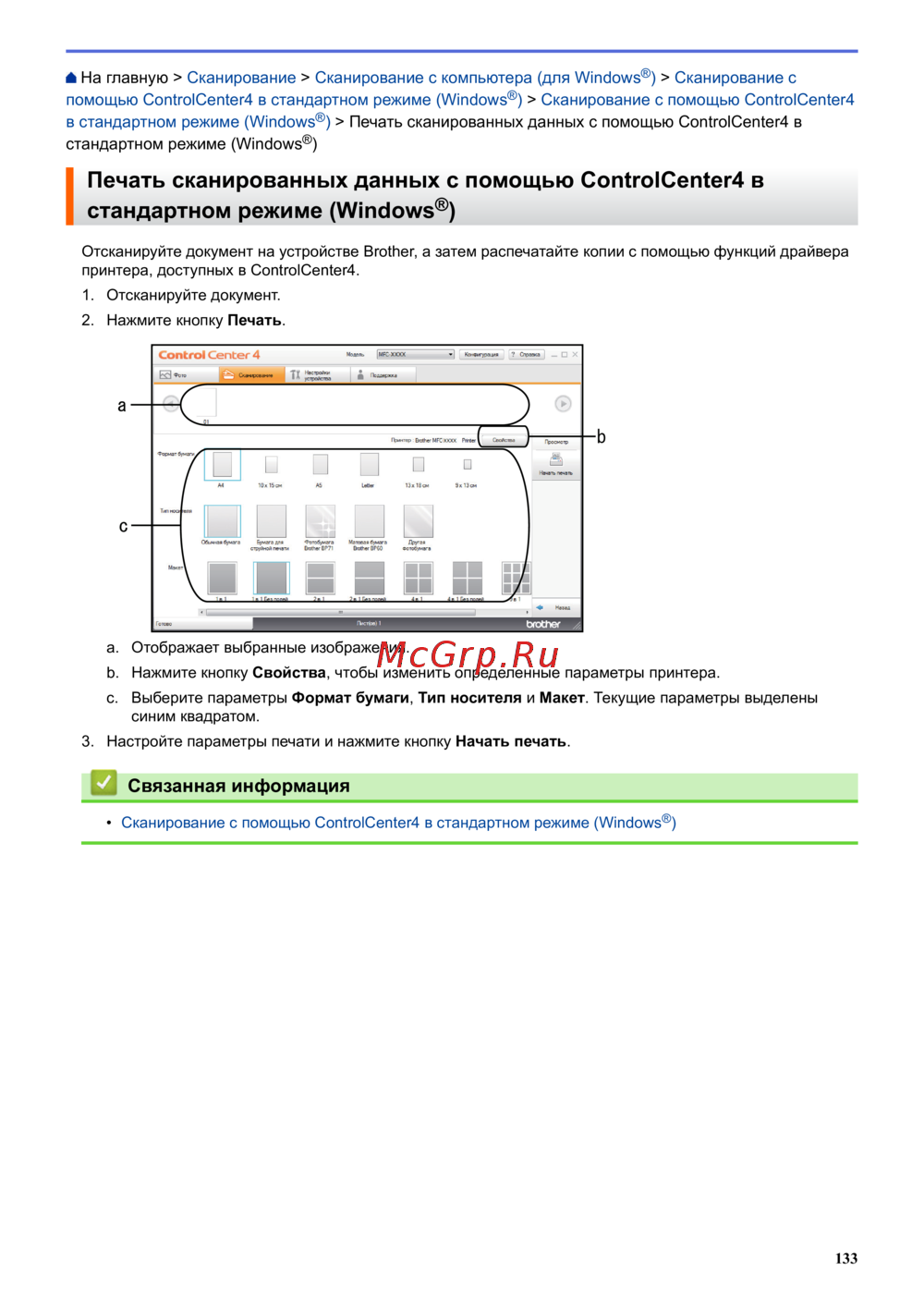 - Настройка устройства brother с помощью controlcenter4 window p.538
