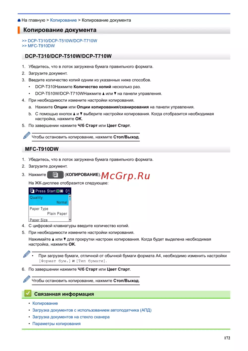 - Связанные модели mfc t910dw p.533