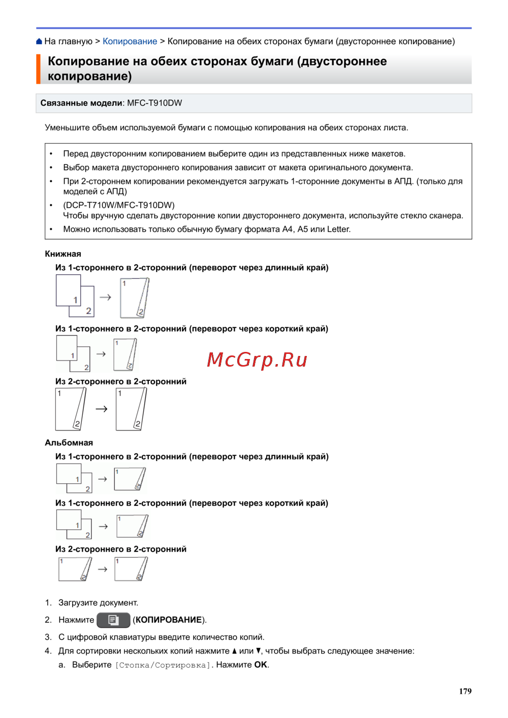 - Копирование для моделей mfc копирование экран по p.534