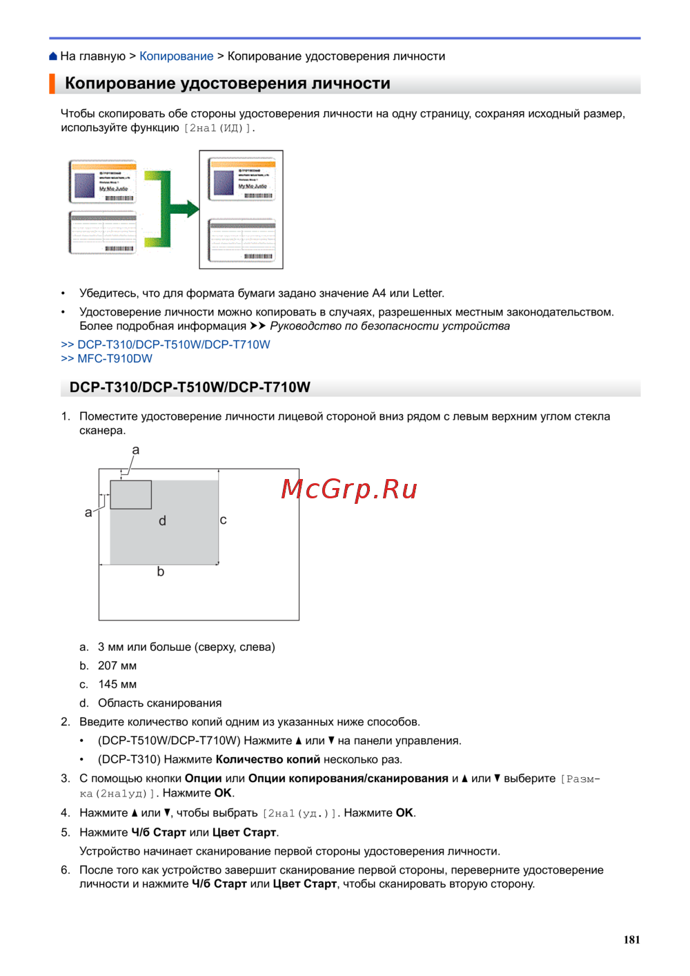 Brother DCP-T710W InkBenefit Plus [187/562] Копирование удостоверения личности