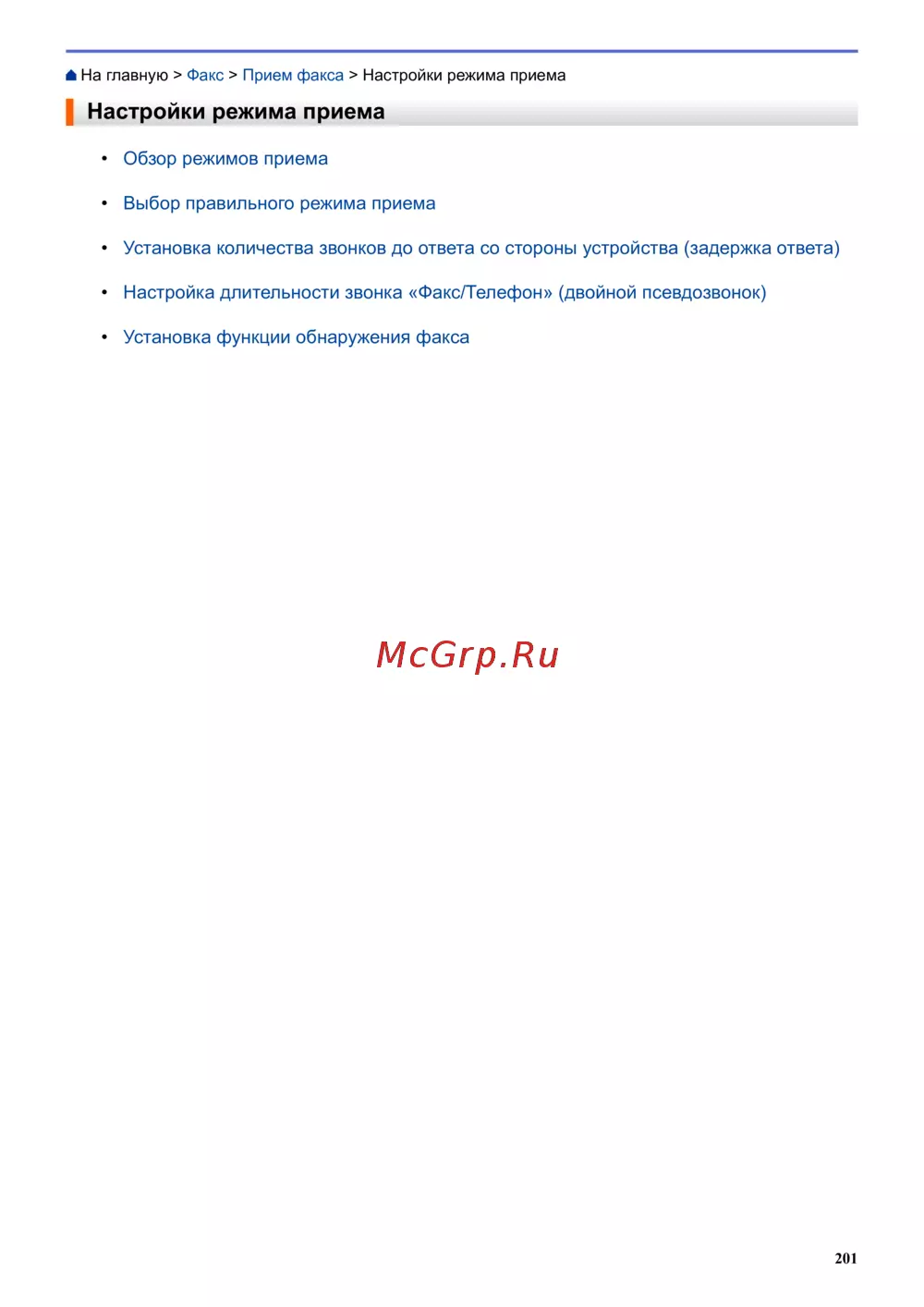 На главную > Факс > Прием факса > Настройки режима приема