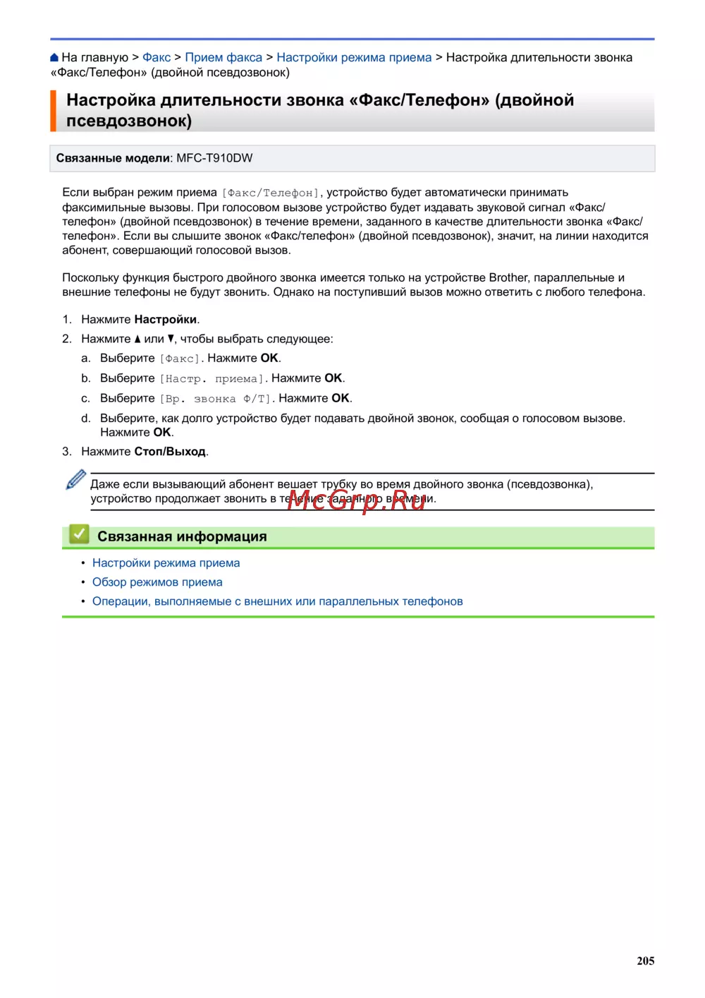 На главную > Факс > Прием факса > Настройки режима приема > Настройка длительности звонка