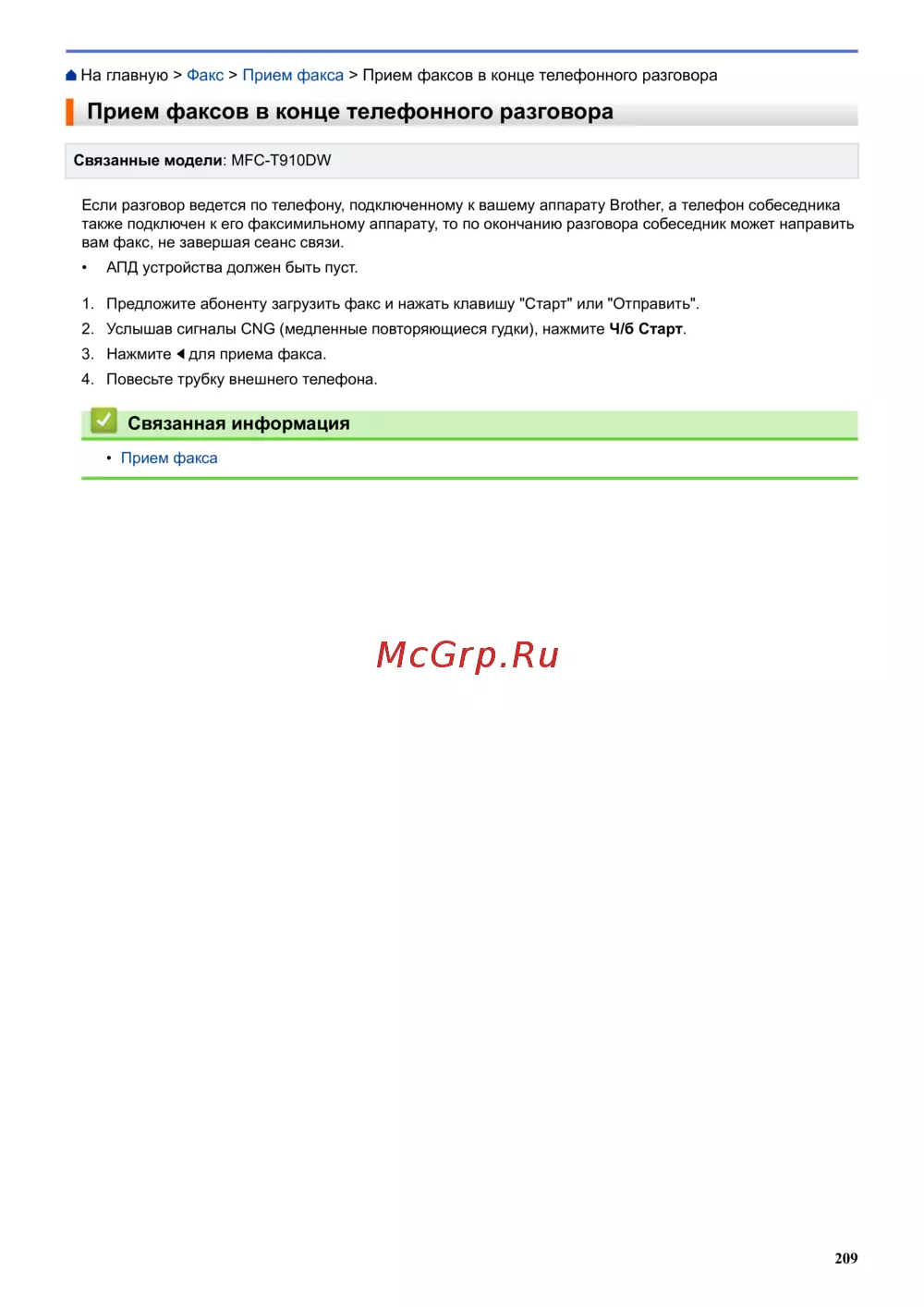 - Эта функция доступна для моделей mfc p.554