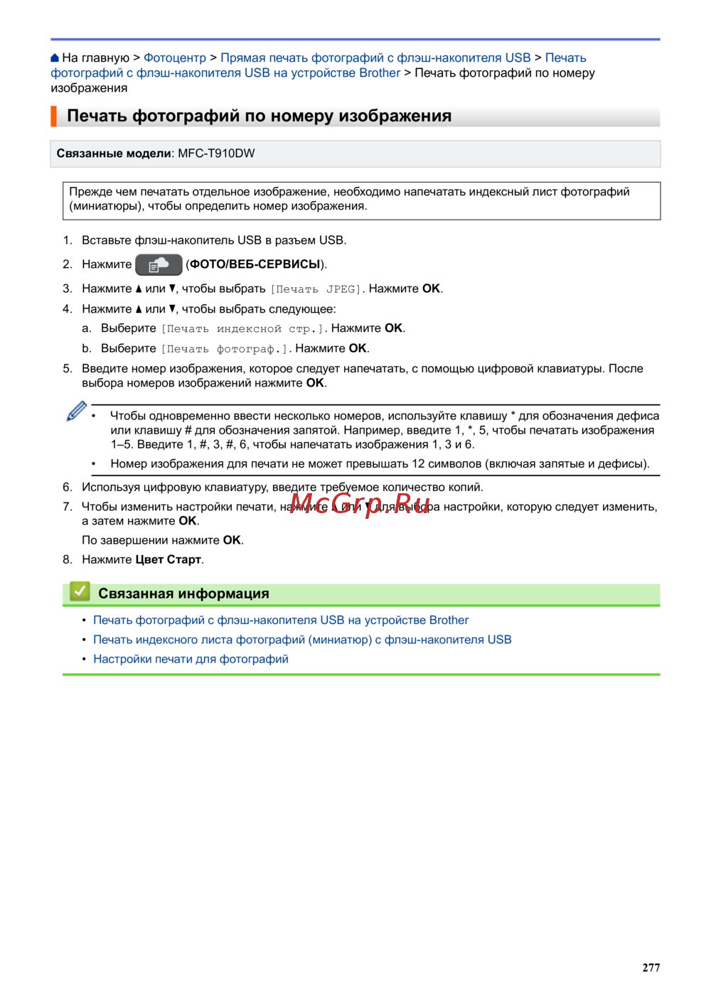 фотографий с флэш-накопителя USB на устройстве Brother > Печать фотографий по номеру