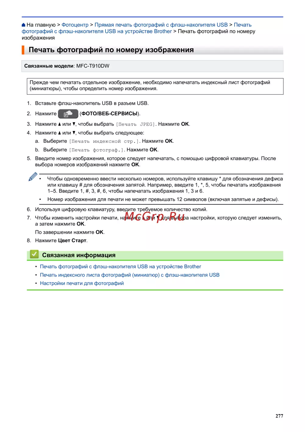 • Номер изображения для печати не может превышать 12 символов (включая запятые и дефисы).