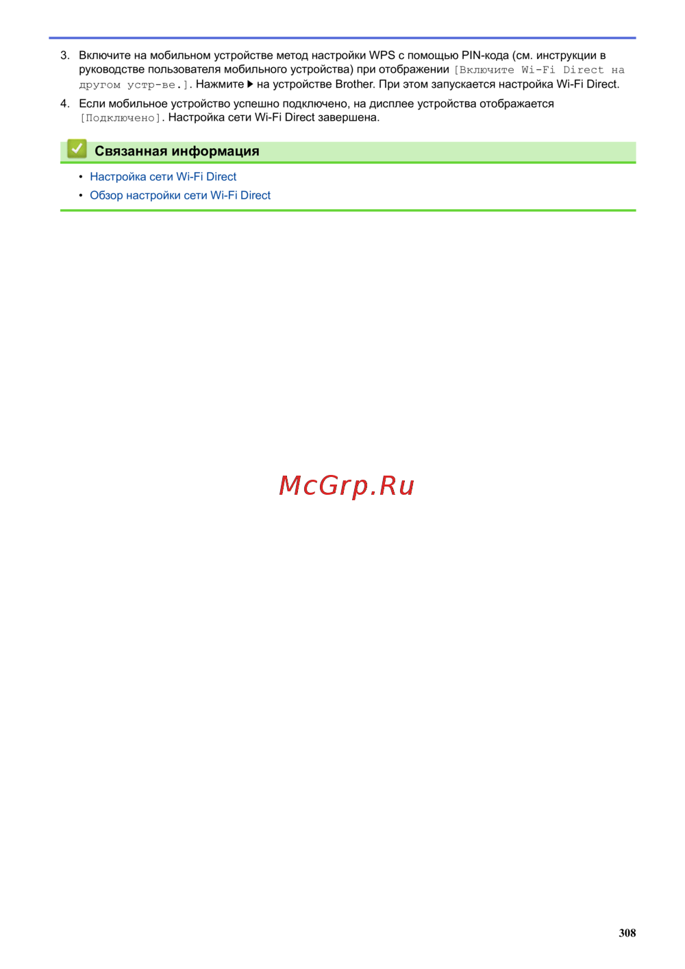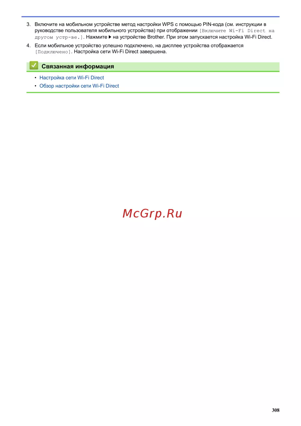 руководстве пользователя мобильного устройства) при отображении [Включите Wi-Fi Direct на