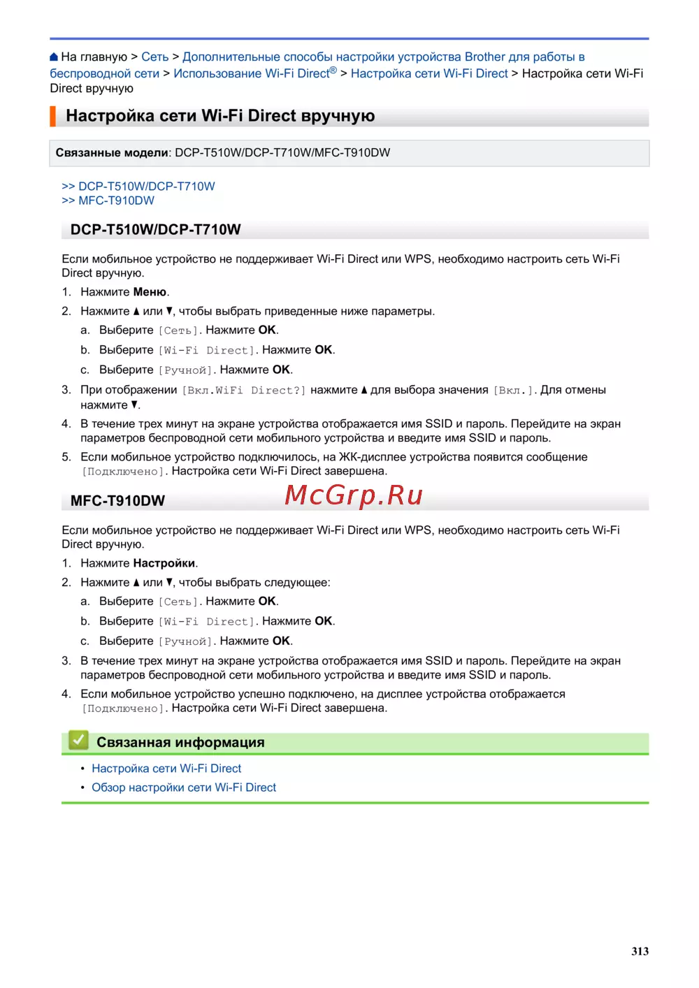 Brother DCP-T710W InkBenefit Plus [319/562] Связанная информация