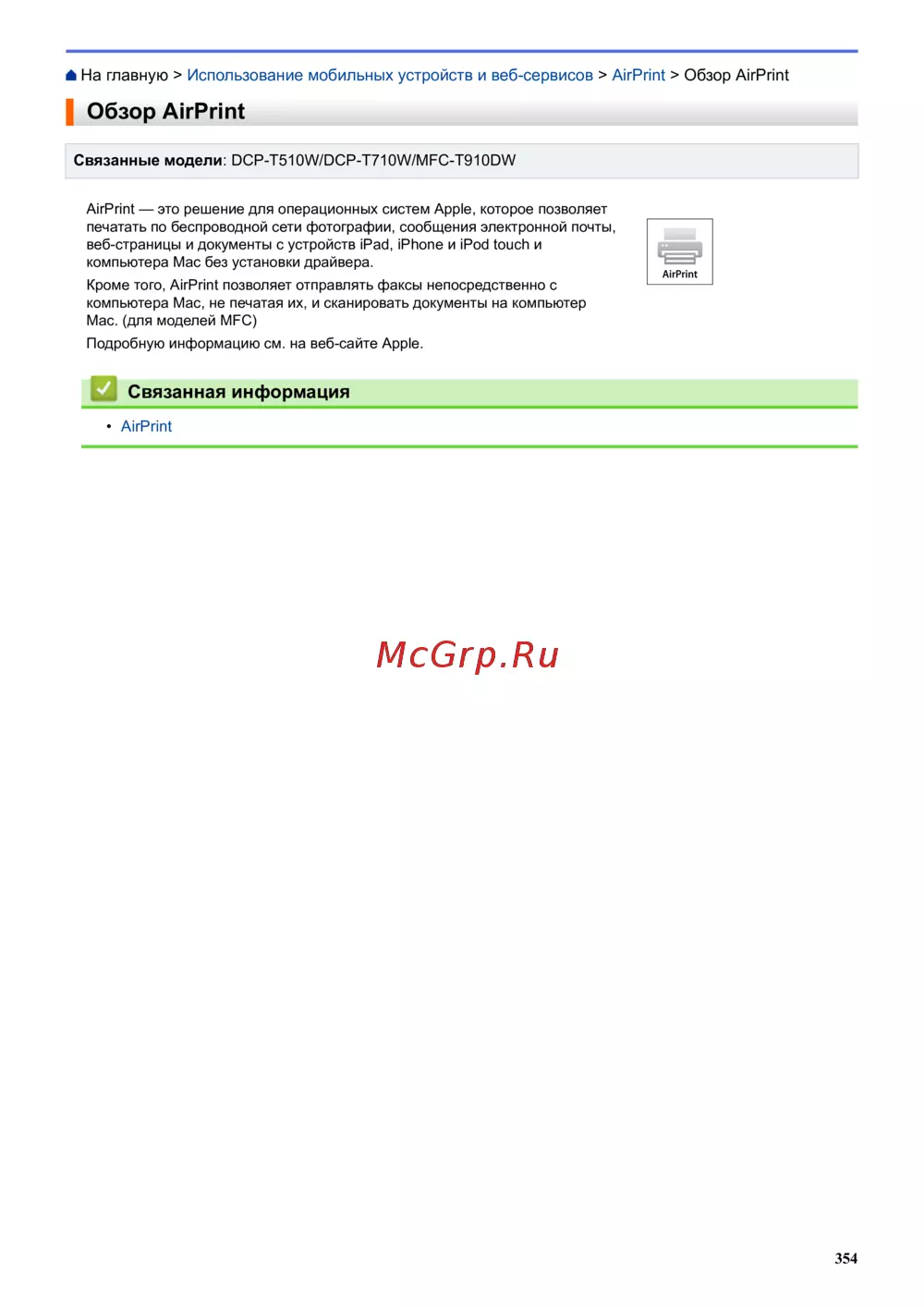 На главную > Использование мобильных устройств и веб-сервисов > AirPrint > Обзор AirPrint