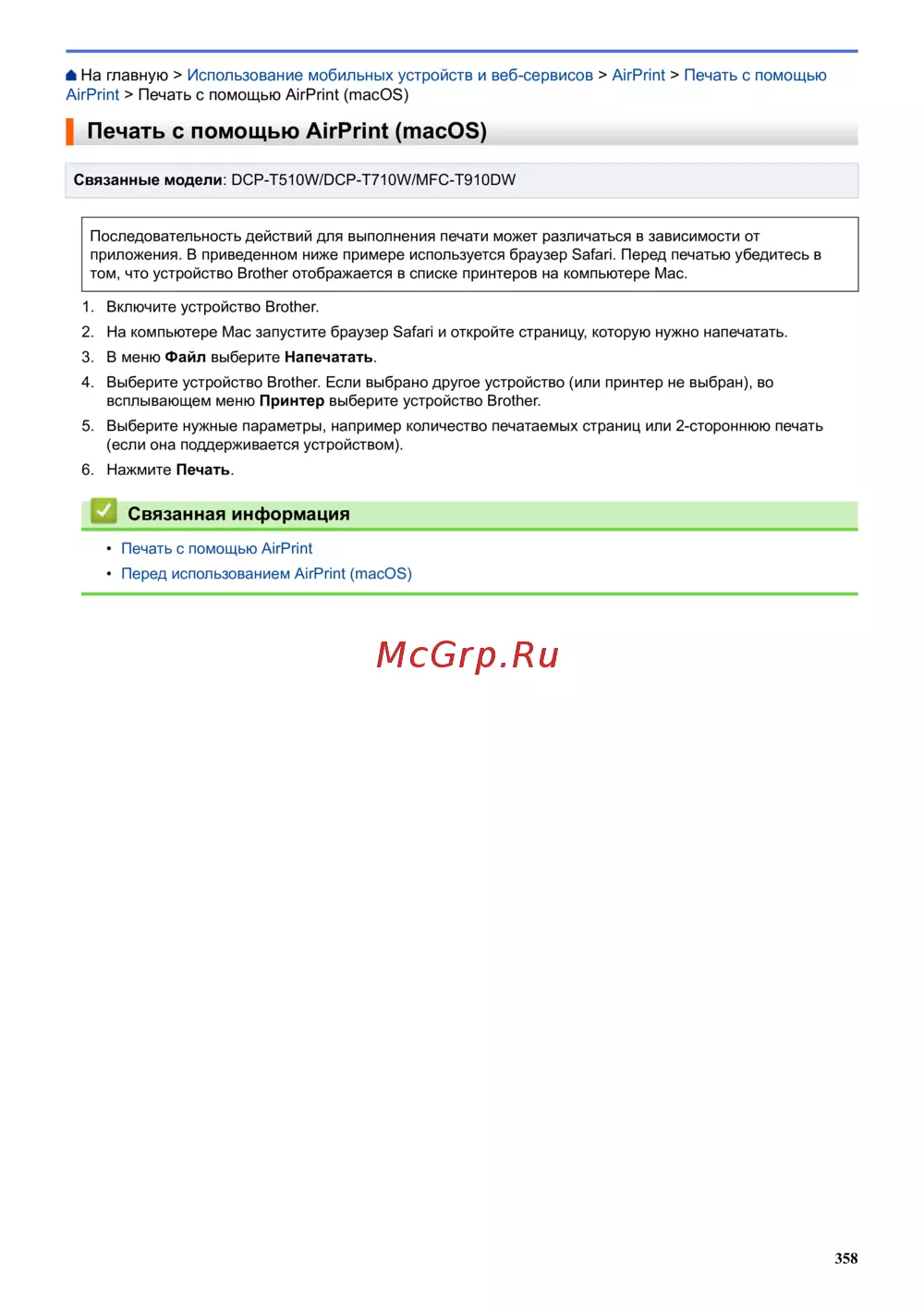 - Настройка устройства brother с помощью подключения по usb mac p.546