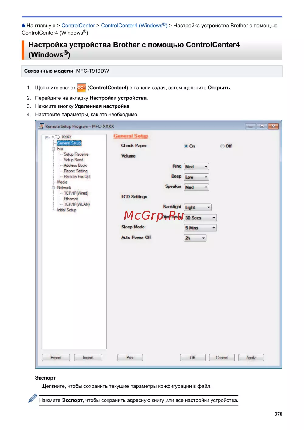 - Настройка устройства brother с помощью controlcenter4 window p.538