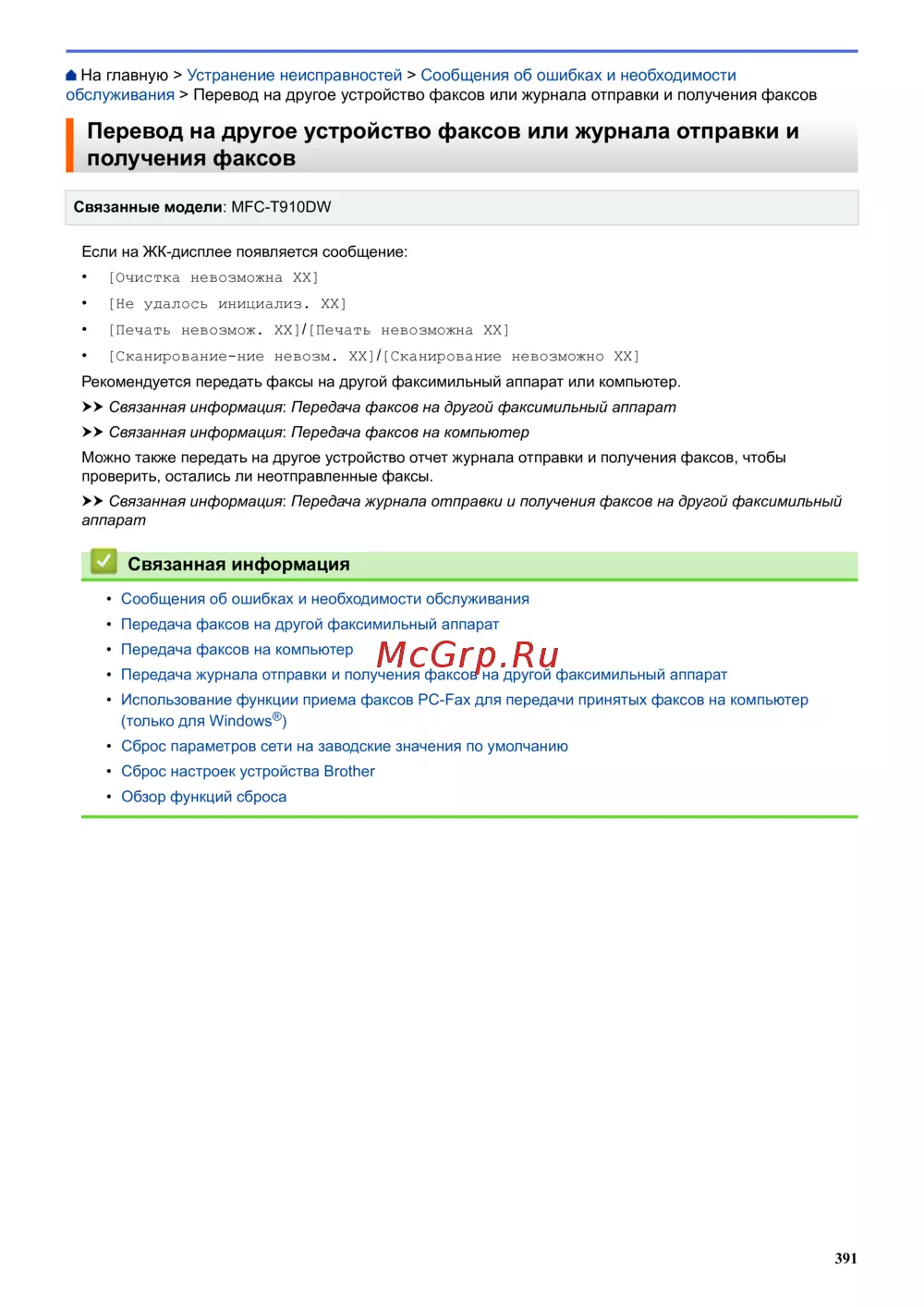 - Связанные модели mfc t910dw p.533