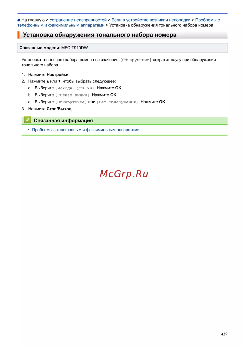 телефонным и факсимильным аппаратами > Установка обнаружения тонального набора номера